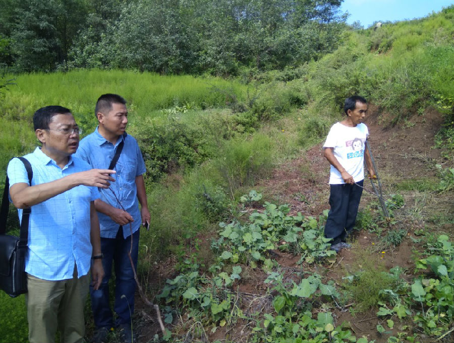 随后,马书记一行和王岁仔一同前往坚固村苟家梁的农田中,了解农业生产情况,并实地查看了公司产业帮扶项目—核桃树苗的生长情况。
