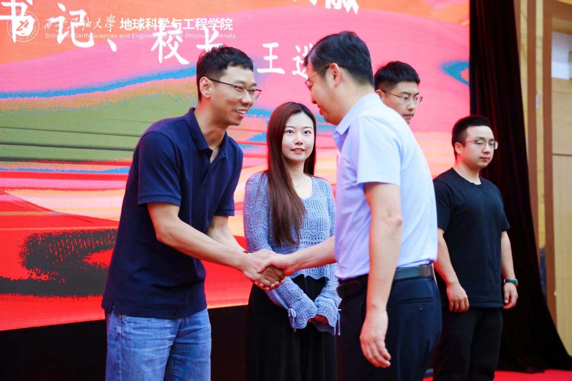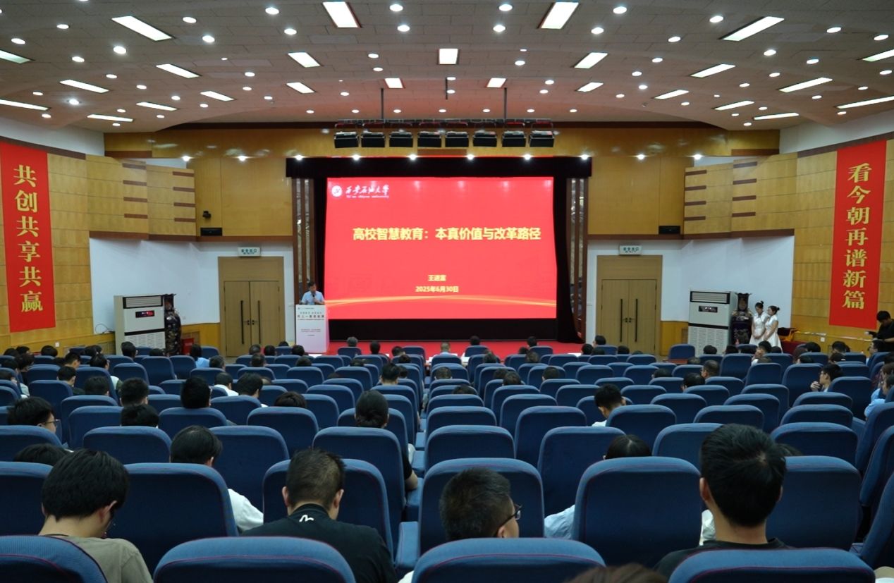 专题党课强作风,智慧赋能育新人。在专题党课环节,王进富以《锲而不舍落实中央八项规定精神 推进作风建设常态化长效化》为题,系统阐述开展学习教育的重大意义和中央八项规定精神的核心要义,深入剖析作风建设的新形势新要求,强调以高度的政治自觉和行动自觉推进作风建设,切实把纪律要求转化为日常习惯,持续营造风清气正的校园政治生态。在讲授思政课时,王进富以《高校智慧教育:本真价值与改革路径》为题,从“怎么想、怎么看、怎么干”三个层面展开深入阐释,为师生带来了一场深刻的思想启迪。他强调,智慧是教育的永恒追求,智慧教育为实现这一追求创造条件,是回归教育本真的关键。当前高等教育面临深度转型,地学发展尤为重要,智慧教育成为全球共识且已具备实施基础,教育主体亟需主动变革。要坚定数智赋能,通过重塑智慧办学新理念、构建智慧办学新体系、构建智慧办学新校园、升级智慧教育新环境、构建智慧教育新范式、促进智慧管理新体系,建设以员工为中心、以教师为根基、有感情有温度的智慧西石大,不负智能时代与育人使命。
