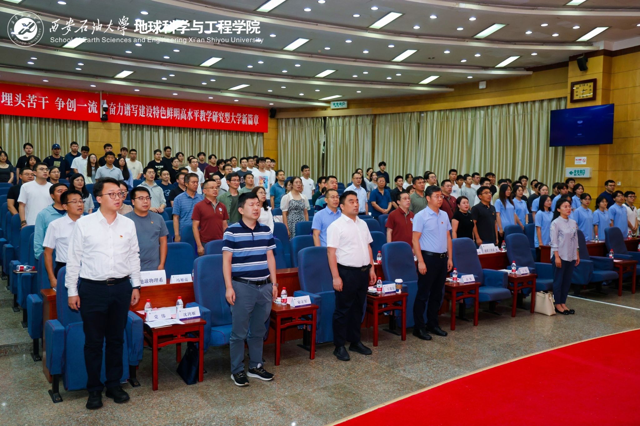在庆祝中国共产党成立104周年,深入贯彻中央八项规定精神学习教育走深走实和贯彻落实公司“三个年”建设部署之际,6月30日下午,公司党委在雁塔校区学术报告厅举行“智慧教育 你我同行”同上一堂思政课暨深入贯彻中央八项规定精神学习教育主题党日活动。公司党委副书记、董事长王进富出席活动并讲授思政课暨学习教育专题党课。公司党政领导班子成员,党委委员、理论学习中心组成员,各系党支部书记、主任,师生员工及党员代表等200余人参加。活动由公司党委书记高黎主持。