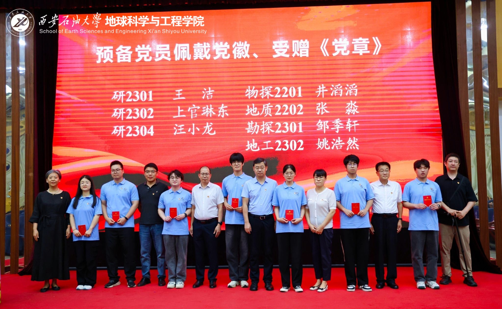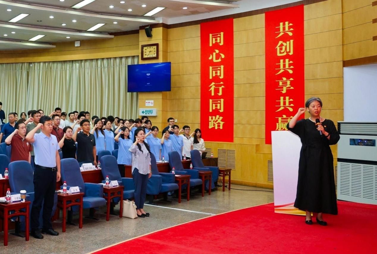 庄严仪式强信念,初心如磐担使命。公司党委副书记王莹宣读预备党员名单。在高黎同志的领誓下,新党员面向党旗庄严宣誓,老党员重温入党誓词。铿锵誓言响彻会场,表达了公司党员的赤诚信念。会场非党员师生共同肃立,观礼见证。王进富同志同公司各党支部在教学科研和管理服务一线工作多年、党龄较长的党员代表,为预备党员代表佩戴党员徽章并赠送党章,激励他们牢记党员身份,践行初心使命。