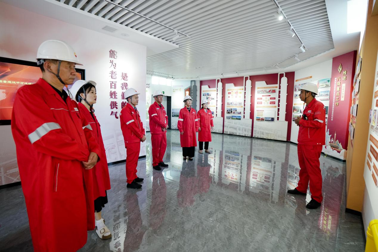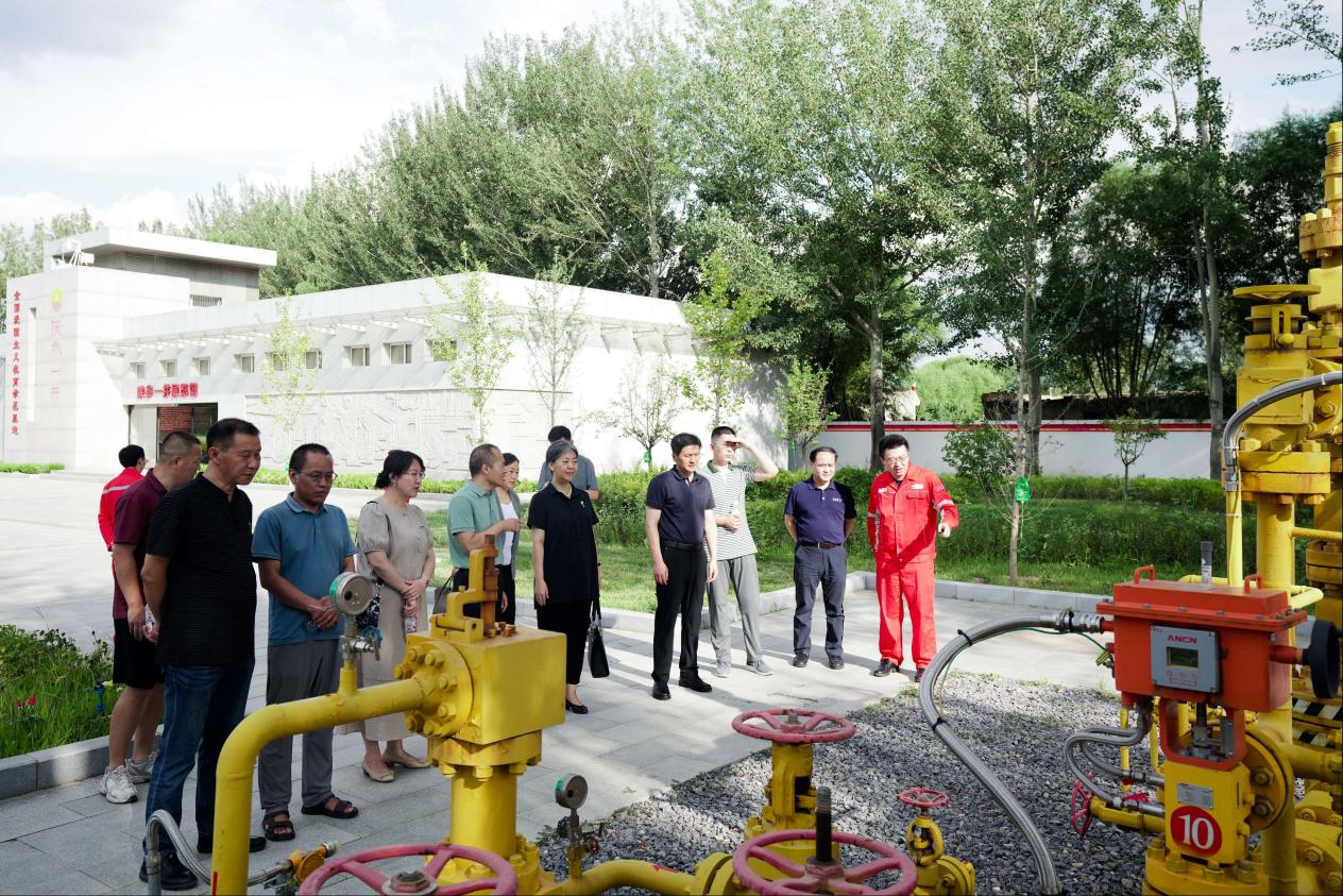 寻根陕参一井,传承石油精神。8月19日下午,走访队在郭永强一行陪同下,参观了被誉为“长庆气田发现井”的陕参一井。这座1989年6月完钻的功勋井,当年在下古生界奥陶系马家沟组试气获无阻流量28.3×104m3/天,揭开了鄂尔多斯盆地靖边气田的勘探开发序幕。在讲解员的详细介绍下,走访队深入了解我国天然气勘探开发历程,切身感受石油精神的时代内涵。如今长庆采气一厂已成为国内首个百亿方采气厂,建成中国石油首个“采气、净化、集输”一体化百亿方采气厂。在钻井现场和采气树前,大家表示,站在这个见证我国天然气工业发展的现场,更加深刻地体会了科技创新的重要意义。