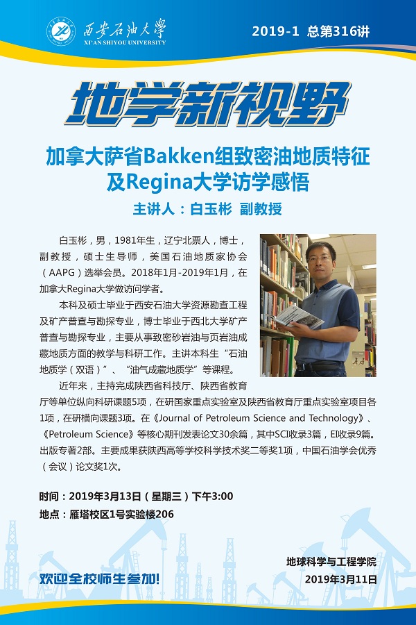 加拿大萨省Bakken组致密油地质特征及Regina大学访学感悟