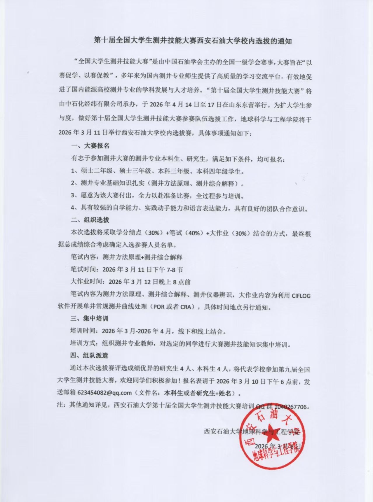 第十届全国老员工测井技能大赛2026世界杯官网校内选拔通知