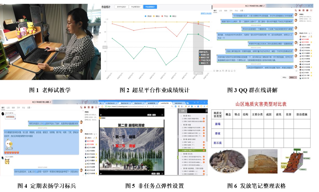 宫雪老师主讲的《地质灾害与防治》课程采用PPT录课+超星平台布置学习任务+QQ群讨论讲解的综合授课方式开展。目前课程已经进行线上教学6周,员工的学习效果良好。宫老师在自建课程过程中总结了几点经验与大家交流分享。