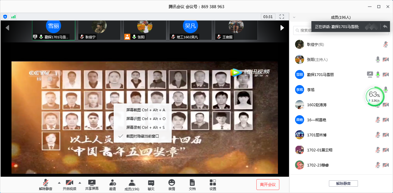 本次“无奋斗,不青春”主题党员教育活动由勘探专业员工第一党支部的马雪丽同志担任主讲人。首先,马雪丽同志以一段小视频为切入点,希望大家能够将每一天都过的有意义。接下来从新时代青年的新使命、我们都是追梦人、奋勇建功新时代、奋斗的青春最美丽四个方面,通过习近平给北京大学援鄂医疗队全体“90后”党员回信、抗疫青年张鑫、杜富佳、涂可蔼、汪勇等的先进事迹,告诉大家如何争做新时代新青年,鼓励大家努力为实现中华民族伟大复兴而奋斗。之后张阳老师进行了总结,张老师鼓励全体党员要做新时代的实干家,要立足本职、从点滴做起,张老师希望员工党员们要提高自制力,在家也要努力学习提高自己,起好模范带头作用,身体力行的影响班级同学,带动同学们的学习热情,努力提高学习成绩。最后,张老师要求各支部重视支部内积极分子和发展对象的日常考察,运用新媒体,开好“三会一课”等组织生活,并对毕业生党员的档案及党组织转接问题等问题进行了提前安排。