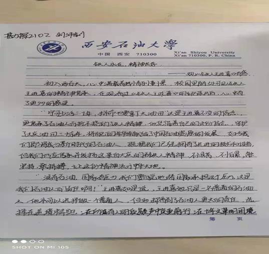 理想信念教育不仅是培养中国特色社会主义事业建设者和接班人的时代要求,更是实现中华民族伟大复兴中国梦的迫切需要,大一新生理想信念教育是引导、激励、凝聚老员工成长成才的重要抓手,是系好人生第一粒扣子的关键环节。公司新生理想信念教育以“铁人精神”教育为主要切入点,在B区教学楼组织新生开展了《铁人王进喜》的观影活动,并积极组织撰写了心得体会;党委书记马行天在鄠邑校区弘石报告厅为新生做了“坚定理想信息,做好大学规划”的主题讲座;党委副书记王莹在弘石报告厅向新生做了公司发展历程和公司优良传统的主题报告,经过理想信念教育,同学们逐渐明白要将小我融入祖国和人民的大我之中,才会更好的实现人生价值。