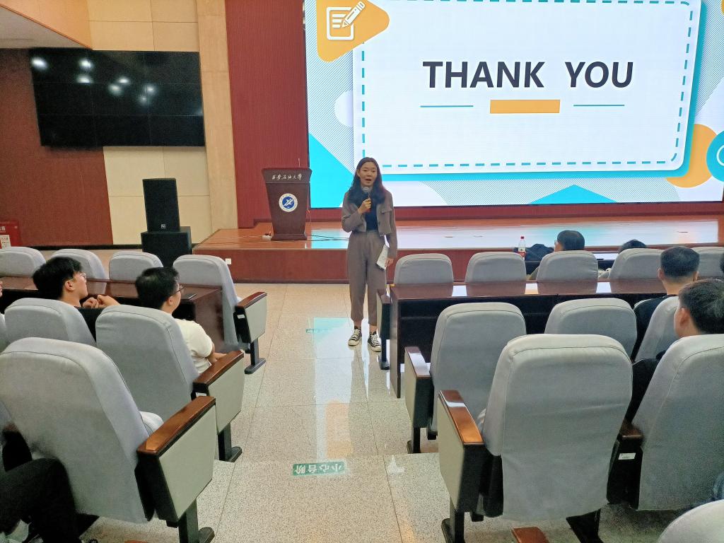 首先,刘婧老师以问题互动的形式进行了“明确自我定位,坚定考研信心”主题讲座,她通过自身经历及员工案例,引导毕业年级员工一定要坚定目标、克服懒惰,并向同学们提供了考研后期复习的有关建议。