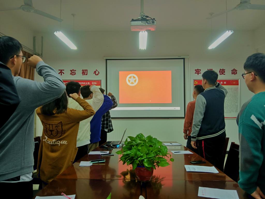 活动在庄严雄壮的国歌声中拉开序幕,大家集体学习了习近平总书记在庆祝中国共产党成立100周年大会上的重要讲话精神,观看相关爱国视频。员工会主席靳兴领学习近平总书记来陕重要讲话和习近平总书记在建党100周年庆祝大会上的讲话。随后地质2002生活委员彭韵力、地质2002退伍军人黄道敏、地工2102班班长高嘉宇、地质2102班班长薛嘉琦分别就自己的学习感悟向其他员工干部做了分享。2021级辅导员刘宇航做了总结讲话,他指出大家要高举马克思主义思想火炬,以铁人精神、延安精神为精神支柱,认真学习专业知识,树立正确的价值观念,将小我融入到党和人民的共同奋斗之中、融入到社会主义建设的伟大进程之中、融入到我国石油事业的蓬勃发展之中。活动最后,全体参会人员进行“请党放心,强国有我”宣誓仪式,由院员工会主席靳兴同学领誓。