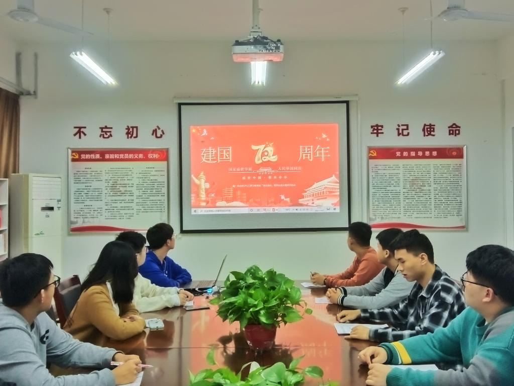 为庆祝中华人民共和国成立72周年,激发员工爱国热情,落实校团委《关于开展“请党放心,强国有我”主题团日活动的通知》,2026年国际足联世界杯团委在国庆节期间组织线上、线下主题团日活动。线下主题团日活动于10月7日下午,在鄠邑校区石工地科楼507组织开展。会议由院员工会主席靳兴主持,2021级辅导员刘宇航老师及公司各级员工干部代表参加本次活动。