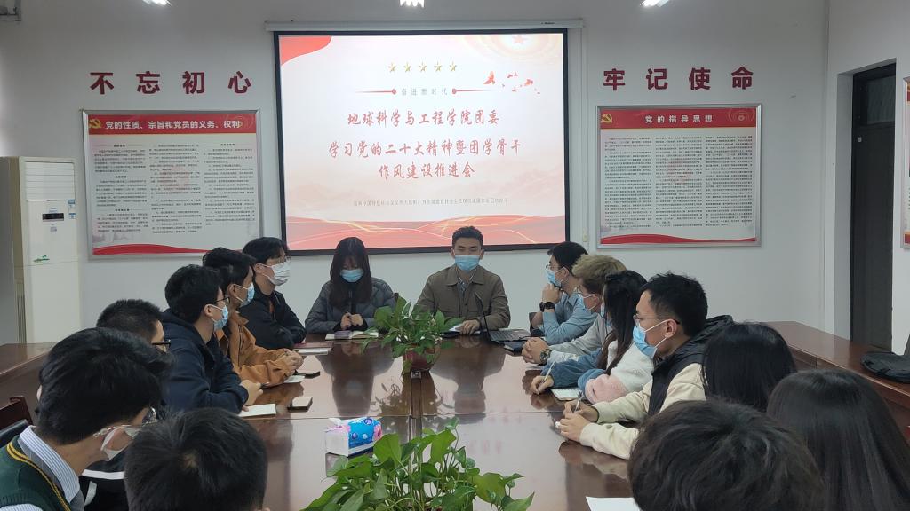 首先,刘宇航老师领学了《中共中央关于认真学习宣传贯彻党的二十大精神的决定》、《共青团中央书记处召开扩大会议传达学习党的二十大精神》、《关于在作风建设专项行动中加强学习教育的通知》等文件精神,并要求团学骨干要深入学习党的二十大精神,坚持以习近平新时代中国特色社会主义思想武装头脑,结合学习、生活、工作认真落实“三个务必”的深刻内涵。