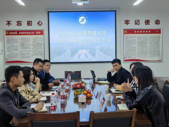 王莹副书记首先对精景慧城(西安)科技有限公司莅临公司洽谈合作表示热烈欢迎,并介绍了公司的员工概况、专业分布、社会实践等情况。随后刘群总经理介绍了公司的主营范围、产品优势及发展规划,并表示欢迎员工在校期间来公司开展社会实践活动。双方就共建社会实践基地、实习实训基地及毕业生就业实习等方面进行深度洽谈。