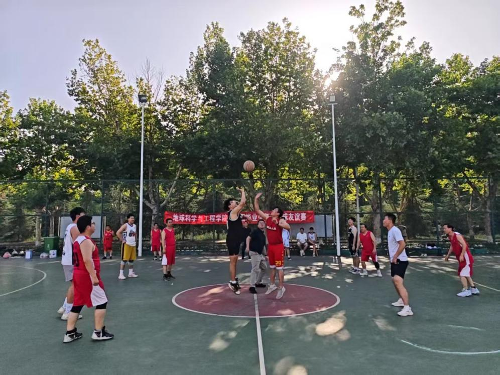 当日下午,平日严谨治学的教授们与即将扬帆起航的毕业生们换上运动装束,组成教师联队与员工联队展开激烈角逐。哨声响起,球场瞬间成为挥洒汗水、传递情谊的舞台。教师队凭借丰富的经验与默契的配合,展现出如地质构造般稳固的战术素养;员工队则依靠青春的活力与无畏的冲劲,发起如地壳运动般迅猛的攻势。双方你来我往,比分胶着上升,每一次精彩的抢断、精准的投篮都引来场边喝彩,充分诠释了“友谊第一,比赛第二”的体育精神。四节常规比赛战罢,双方意犹未尽,又自发进行了加时友谊赛,将现场气氛推向高潮。